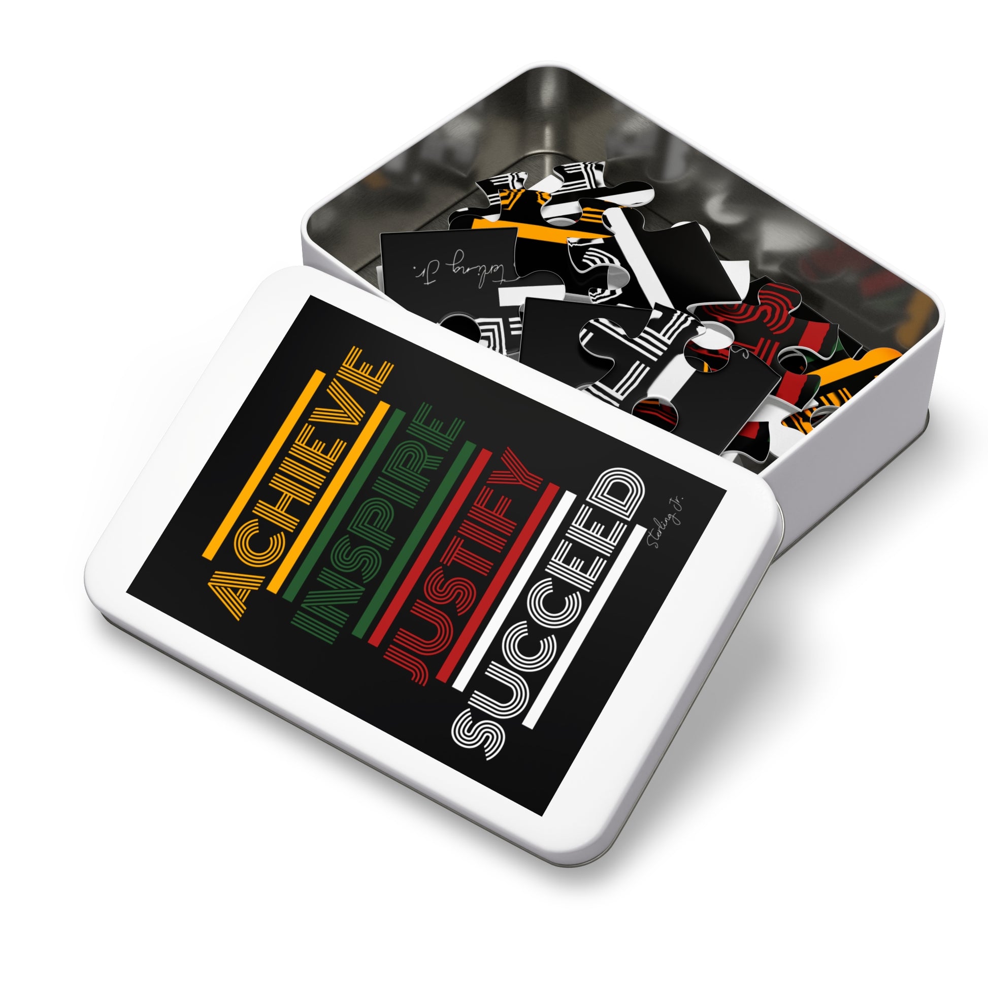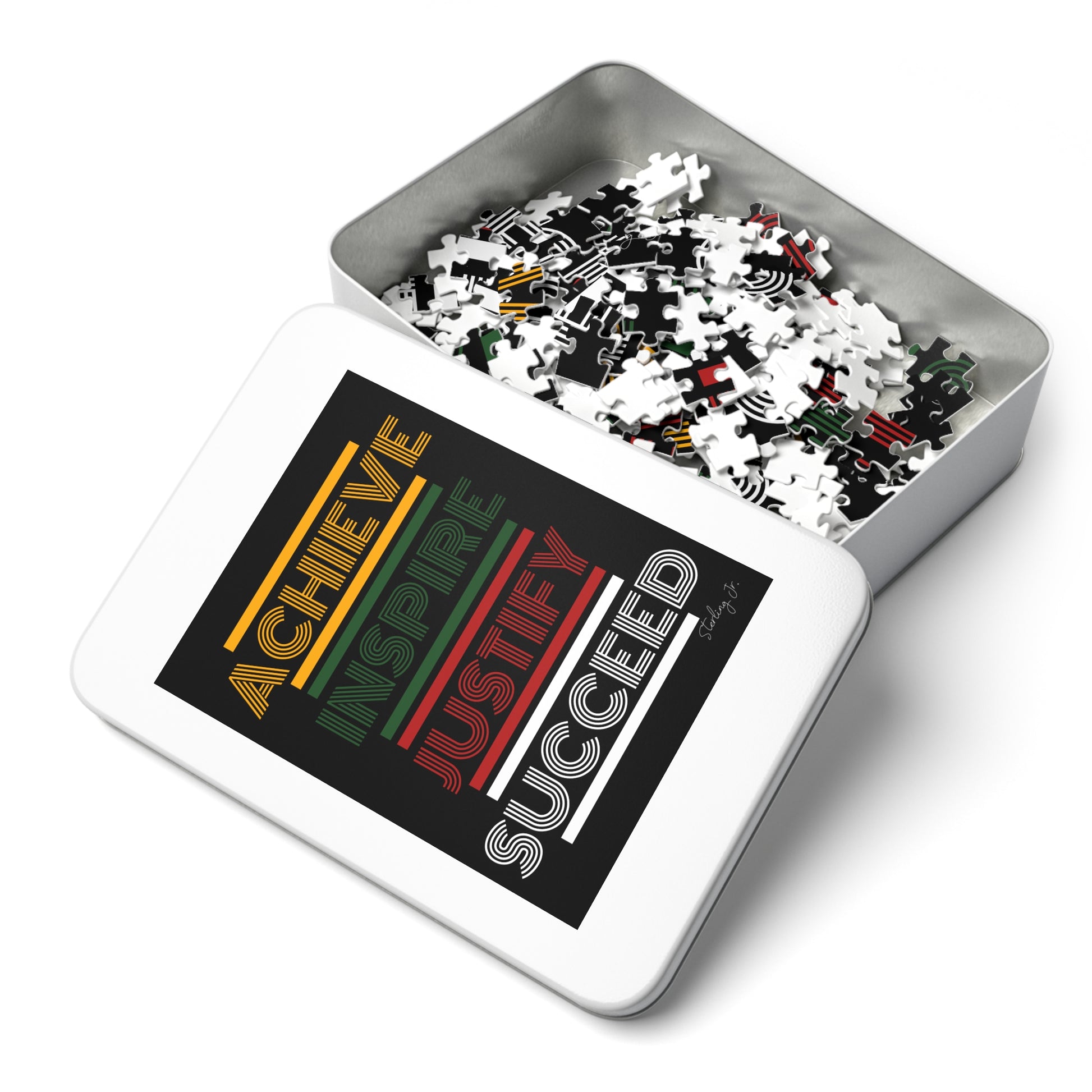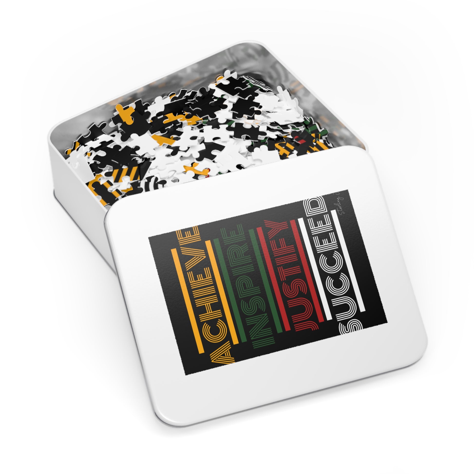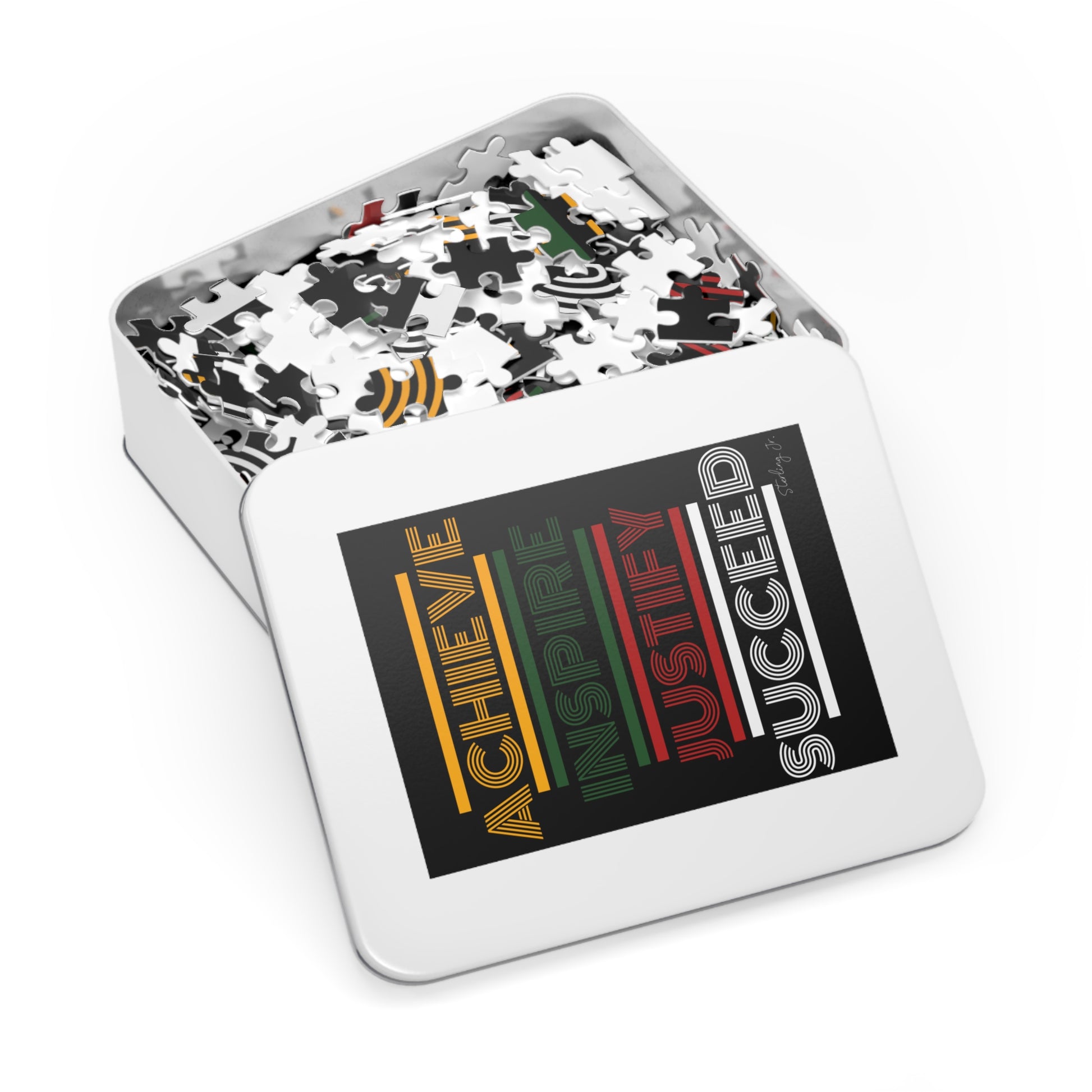 .: This custom 1000-piece puzzle comes in a white metal tin box