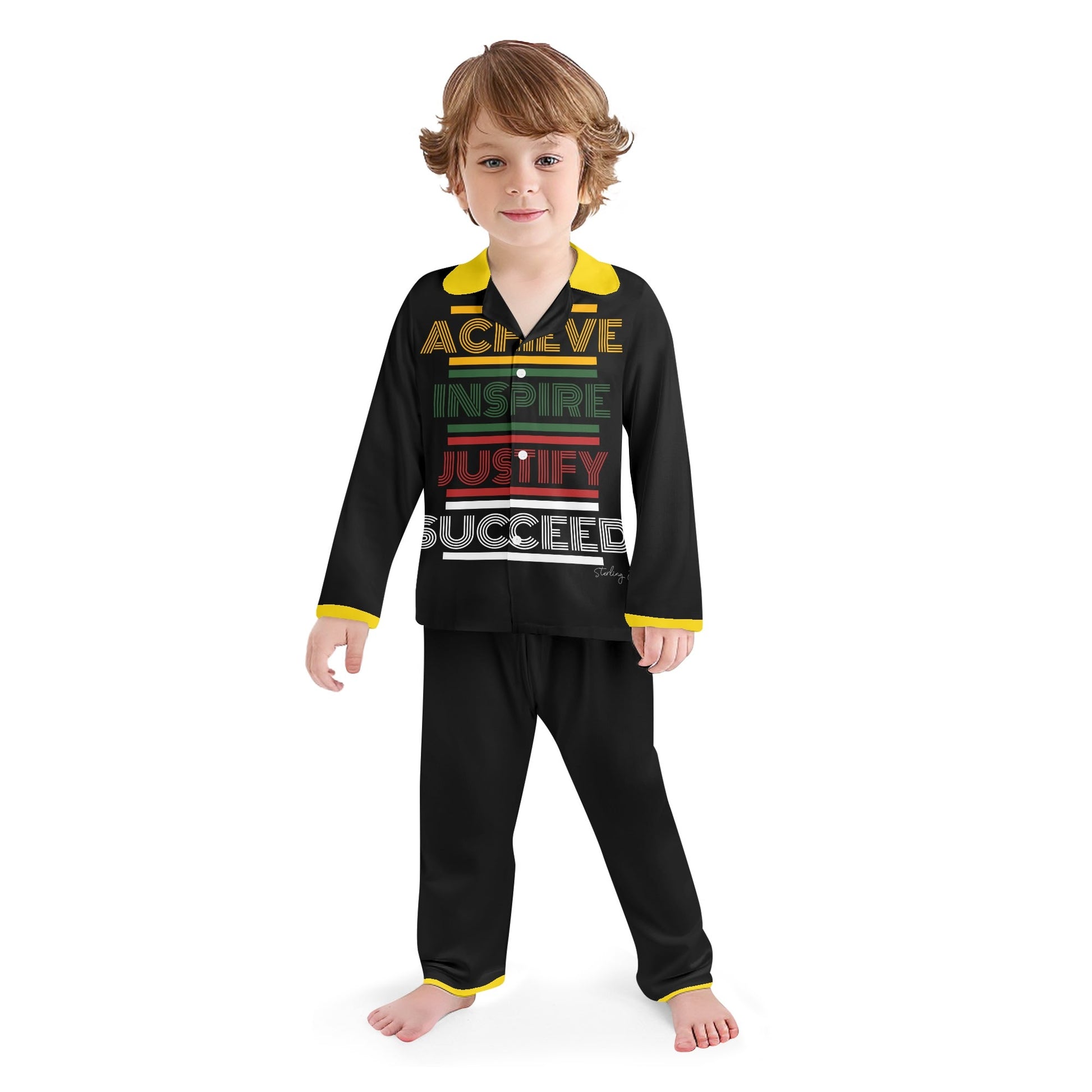"AIJS" Kid's Collar Design Long Nightwear Pajama Set (No Pockets)
