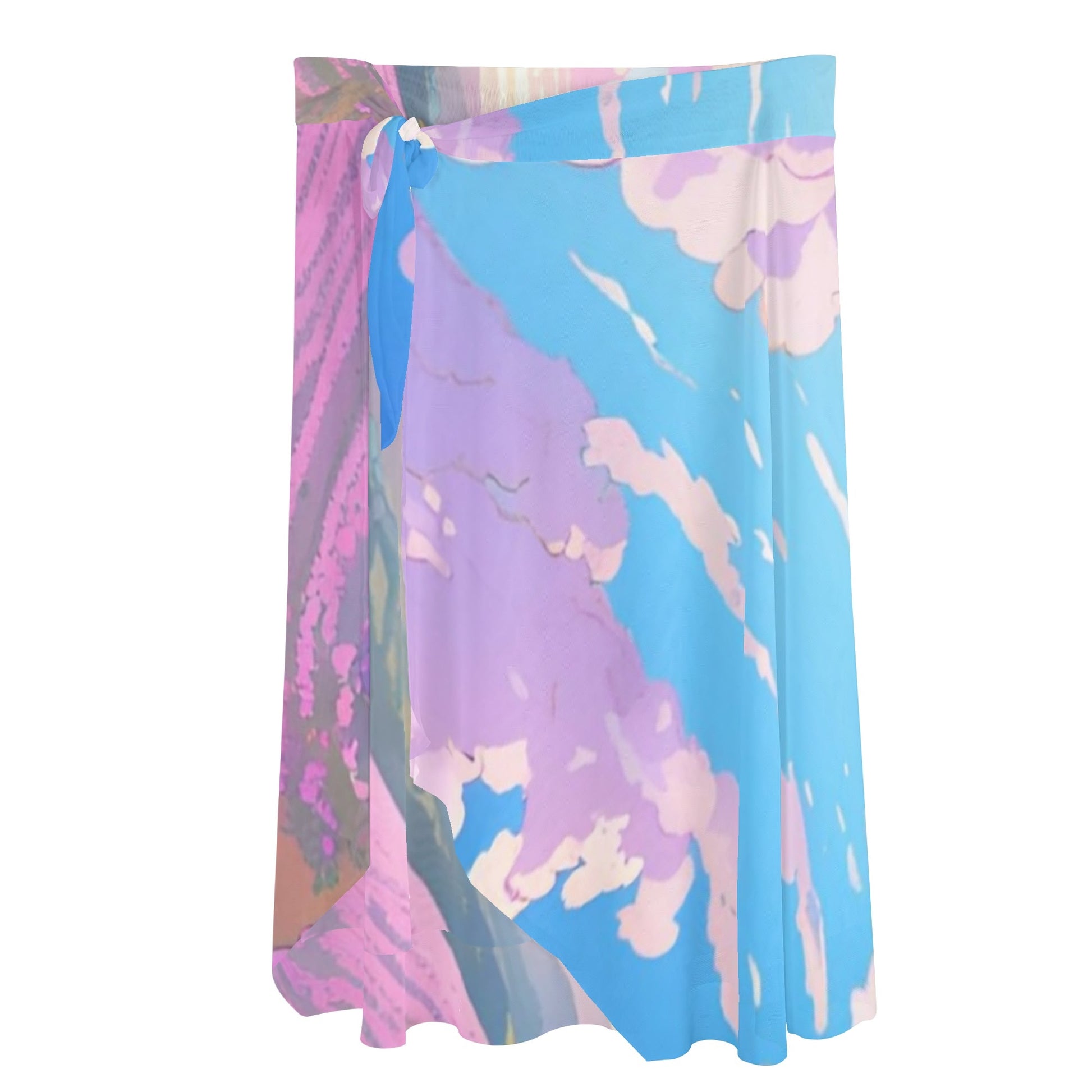 Stay stylish and carefree with this transparent beach skirt cover-up with all over print, secure tie closure, flowy asymmetrical hem, easy care maintenance, and versatile design !